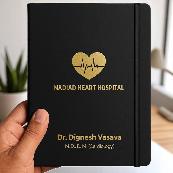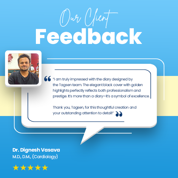 Dr. Dignesh Vasava (M.D., D.M. – Cardiology), a respected cardiologist at Nadiad Heart Hospital, approached Tagsen with a unique request — a custom diary that would reflect his professional identity, align with his hospital's brand, and be practical for daily medical use.