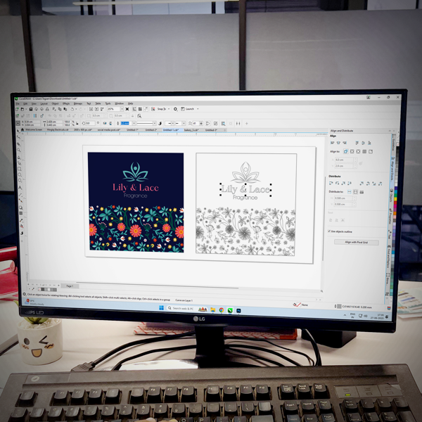 Design-wise, we worked side by side with the Lily & Lace team to capture their brand’s essence. They wanted something soft, romantic, and fresh—so we created a deep navy-blue background to give the bottle a rich, modern look. The pastel flowers in pink, yellow, and teal added a gentle, floral touch that reflects the fragrance itself.