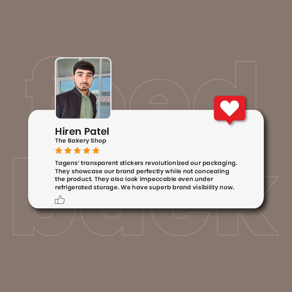 Before working with Tagsen, we were honestly stuck. Finding packaging that looked good AND worked for our bakery items was harder than we thought. Our old stickers either covered up the logo or peeled off in the fridge, which looked terrible on the shelves.